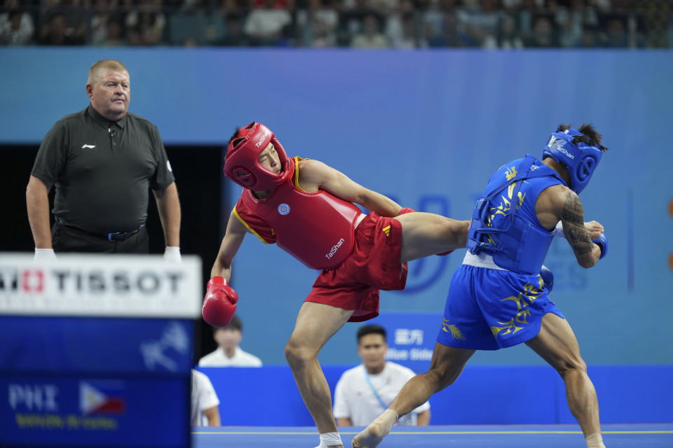 武术——男子散打56公斤级:中国选手唐思硕晋级决赛